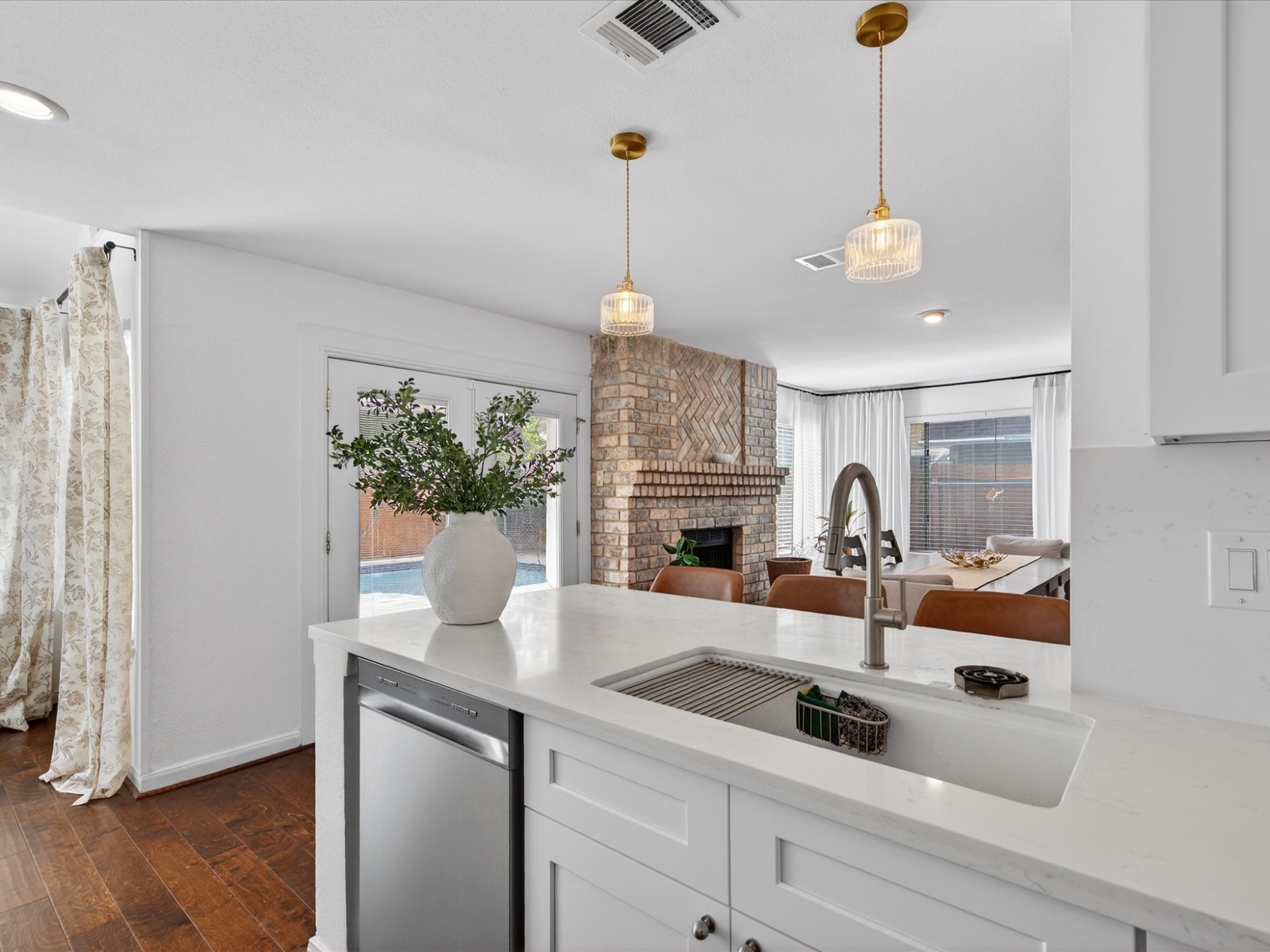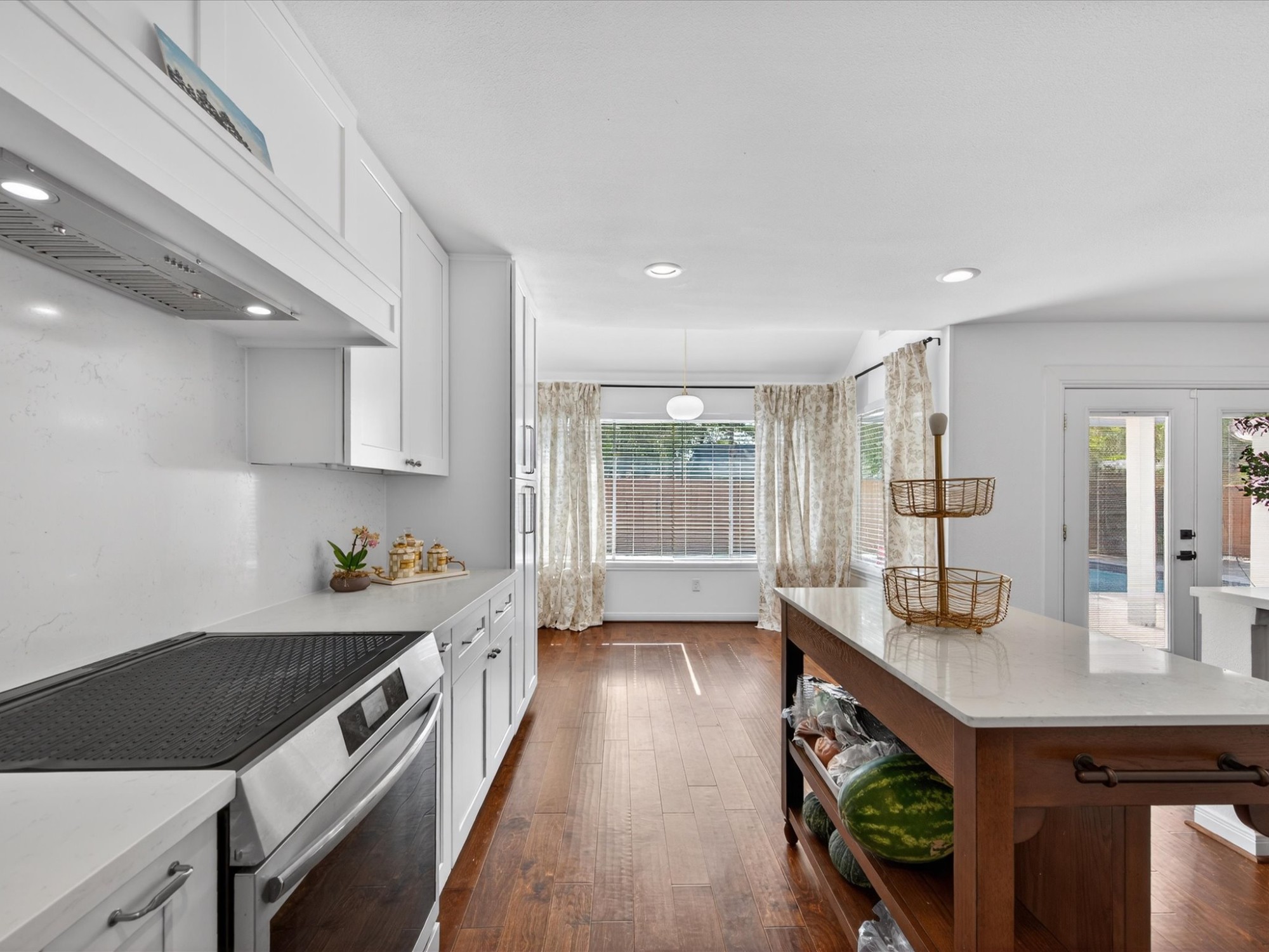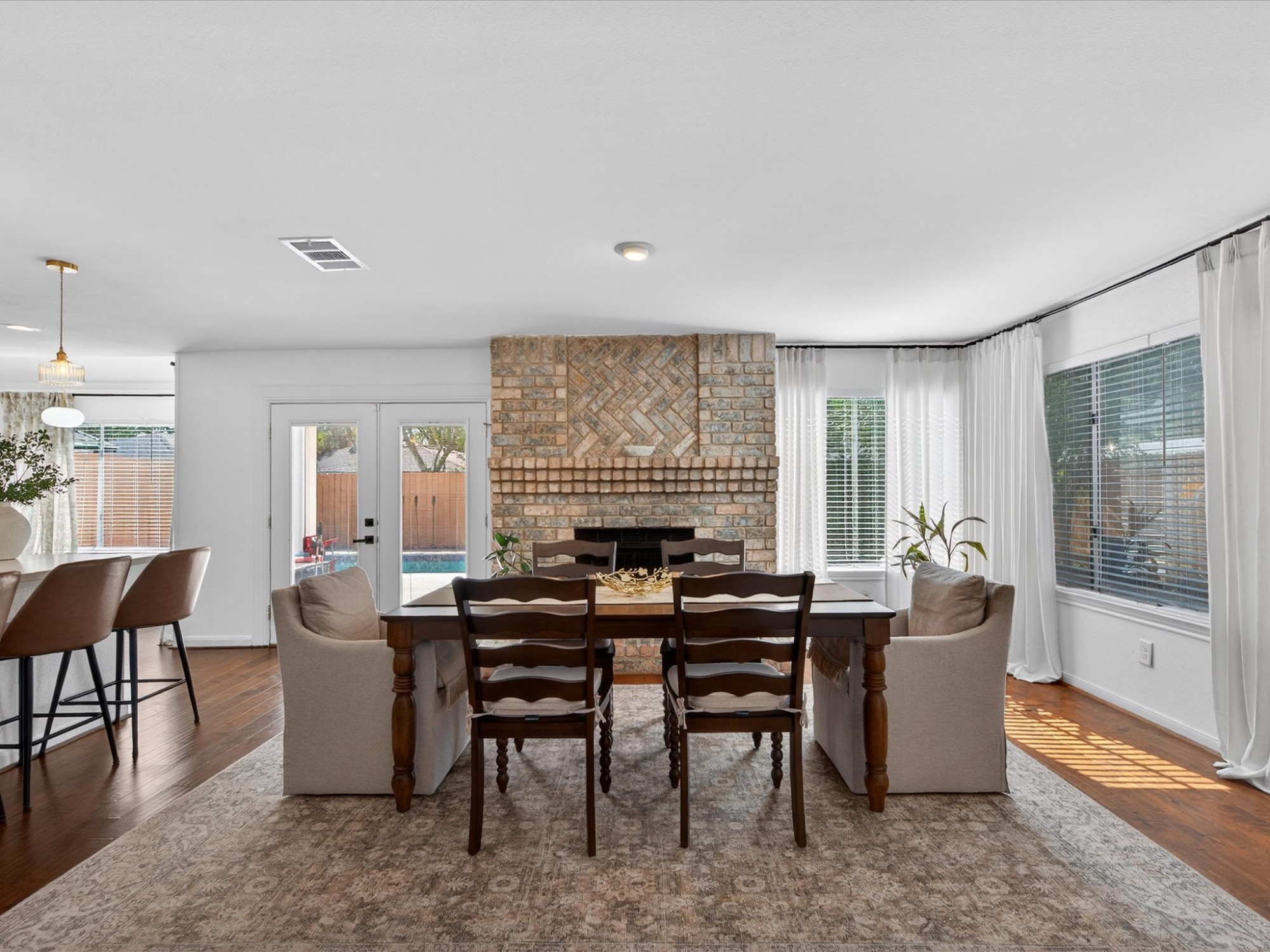 Welcome to a beautifully updated home in the heart of the highly sought-after Energy Corridor, where timeless character meets modern comfort. This inviting 3-bedroom, 2-bath residence features soaring ceilings and a thoughtfully designed layout. A private study offers the perfect work-from-home or flex space. Recently remodeled kitchen shines with quartz countertops, abundant cabinetry, generous counter space, and a breakfast area overlooking the pool. Just off the kitchen, the formal dining room is full of charm, anchored by a striking brick wood-burning fireplace. The spacious primary suite is a true retreat, complete with a soaking tub, separate shower, and ample room to unwind. Secondary bedrooms are generously sized, offering comfort and flexibility. Step outside to your own backyard oasis featuring a stunning pool with elegant travertine decking. This home offers an unbeatable location near top employers, dining, and amenities. Schedule your showing today!
